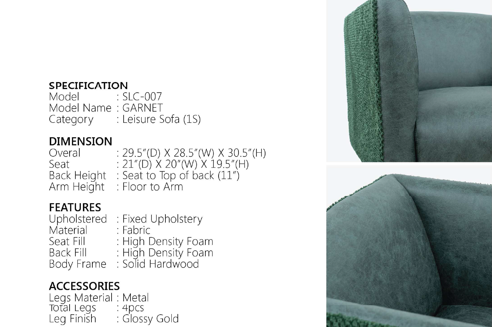 Tastefully crafted, the Garnet Leisure Sofa is for those who trully understand what true luxury means. Have its own design simple style and trend, but this timeless design can easily assimilated into any type of that interior.