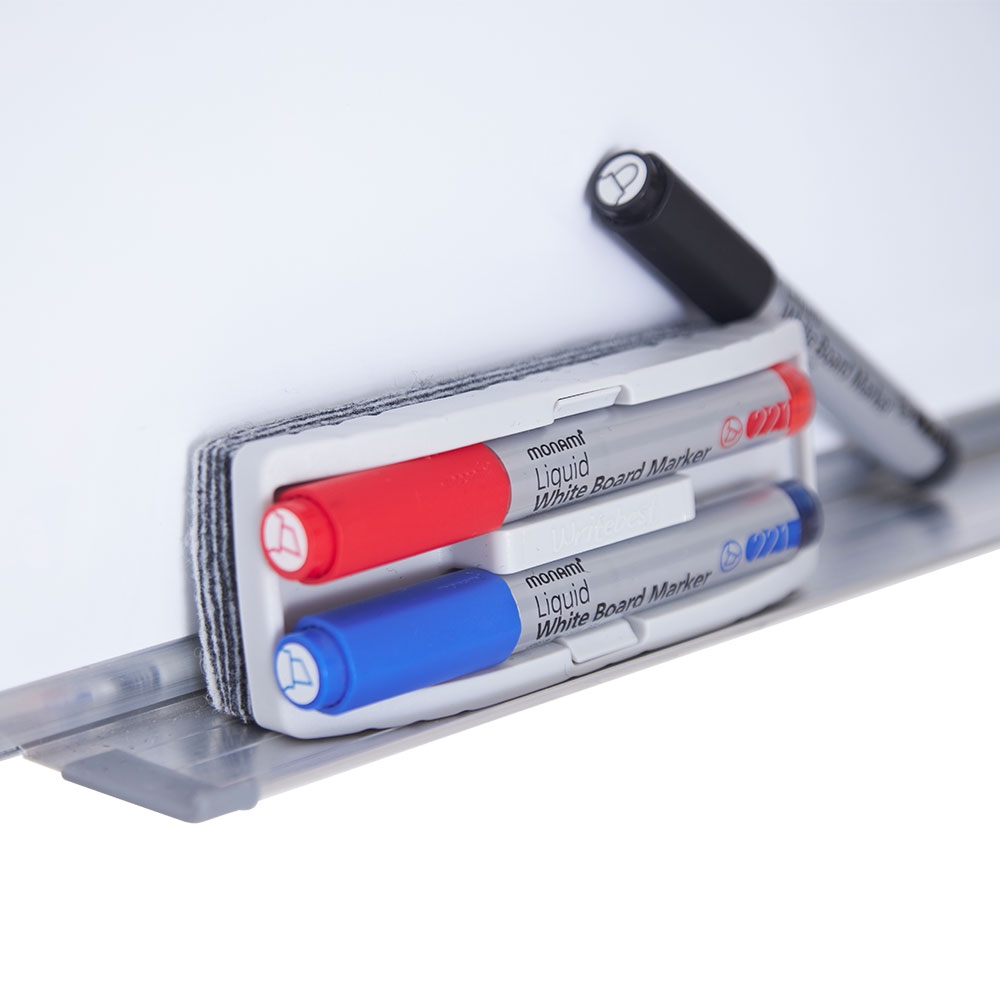 The Pro White is a dual-purpose innovation to optimise space and presentation. This magnetic whiteboard includes a retractable projector screen to suit any presentation style.