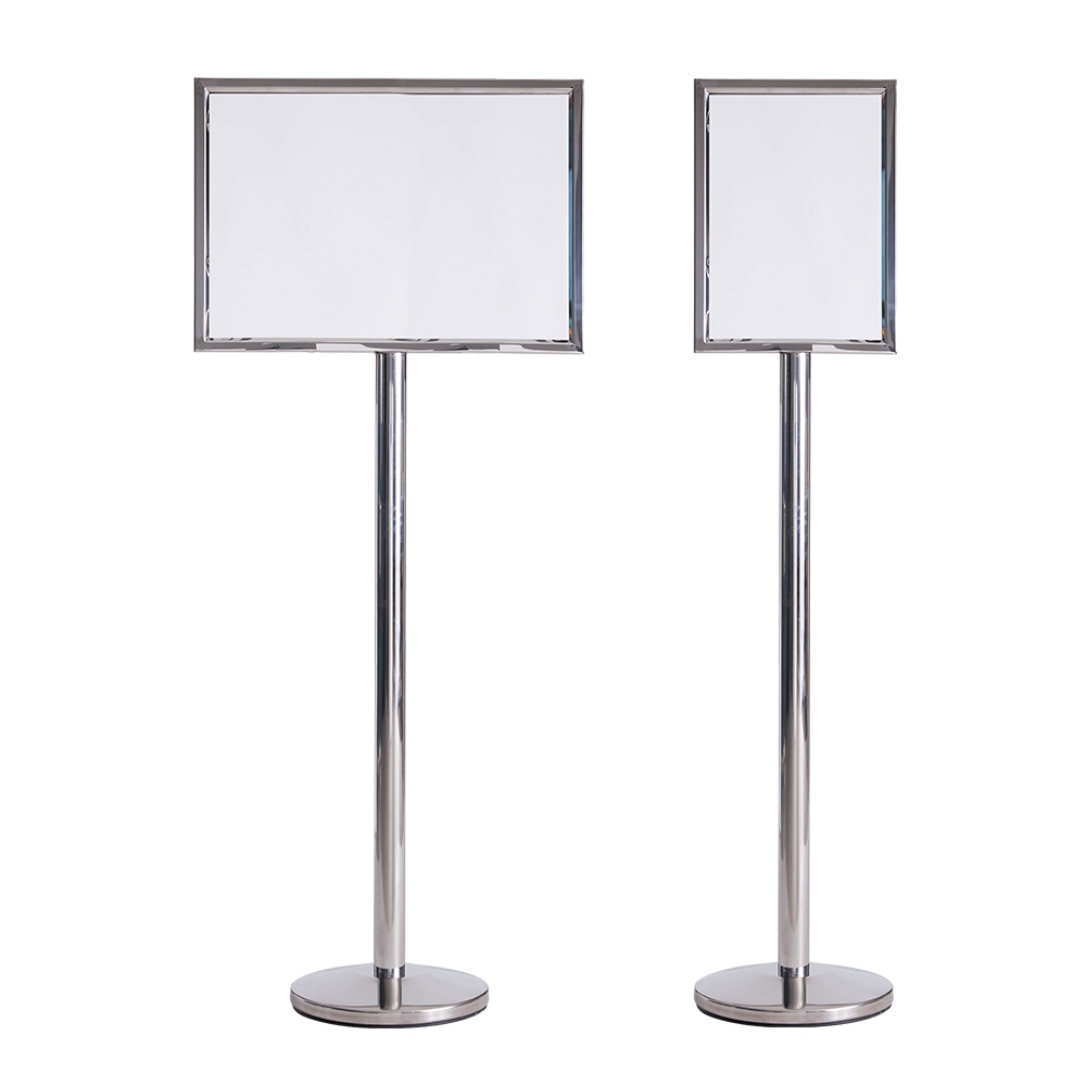 The Stainless Steel Sign Board comes in 2 sizes with 2 transparent acrylic pieces to display and protect the information materials.