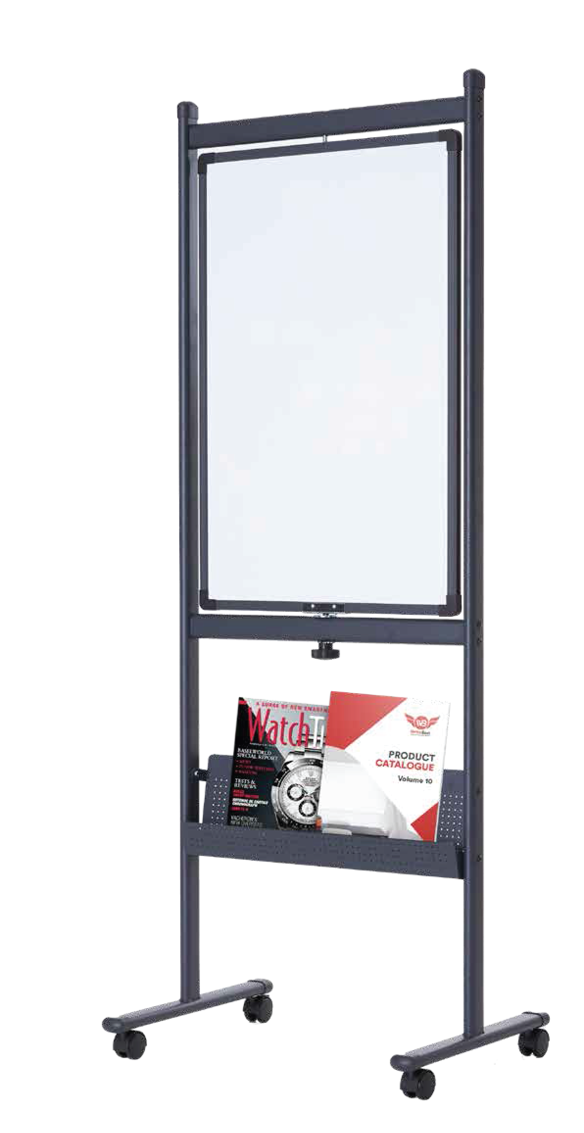 Diversify your whiteboard usage with Viva Board. Get the most out of your presentation board that pivots vertically. It comes with perforated steel underneath for your books or magazines.